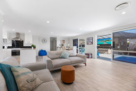 Inside, you'll find four bedrooms, two bathrooms plus a guest powder room, and an open-plan kitchen, dining, and living space that flows seamlessly outdoors. The modern kitchen features gas cooking, a breakfast bar, and quality appliances - perfect for everyday living and entertaining. Ducted air conditioning, gas infinity hot water, double glazing, and insulation ensure year-round comfort, while modern decor adds a fresh, contemporary feel.