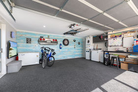 The internal-access garage with clever lifestyle door is currently set up as a games retreat with laundry/workshop, plus there's ample off-street parking for multiple vehicles or the boat.