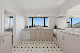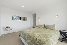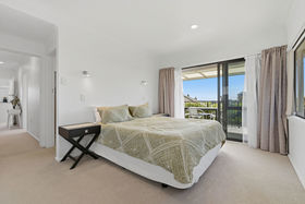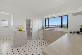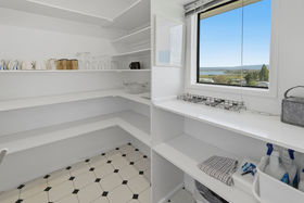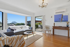 Sun-filled across both levels, the upper floor features the main living area, including a spacious master bedroom with a large walk-in wardrobe and sweeping Mount views, along with an additional double bedroom. The kitchen is well-appointed with a walk-in pantry and enjoys wide estuary views, making everyday cooking a pleasure.
