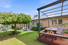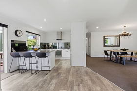 At the heart of the home is a generous, modern kitchen featuring sleek stone benchtops and ample workspace - perfect for everyday cooking or entertaining guests. The dining area flows effortlessly outdoors to a private patio, an ideal spot to relax with a cuppa, while the main living area opens seamlessly to a covered deck that flows down to the lawn, creating the perfect setting for alfresco dining and year-round entertaining.